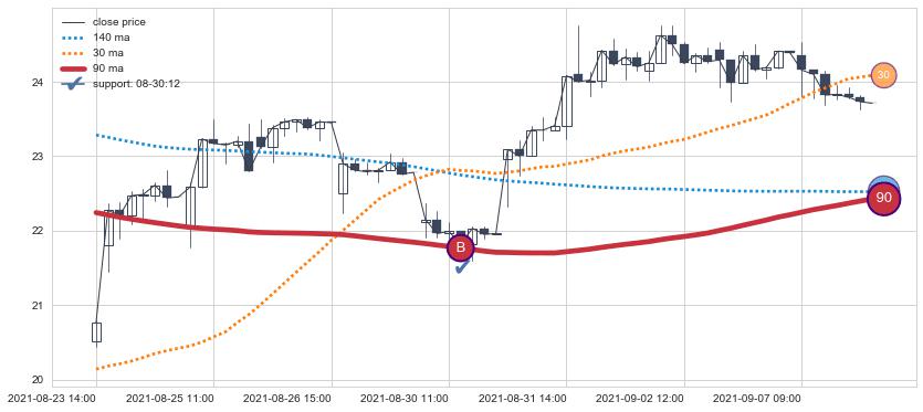 上涨趋势08-23 14:00-09-07 15:00,均线90确认关键支撑1处