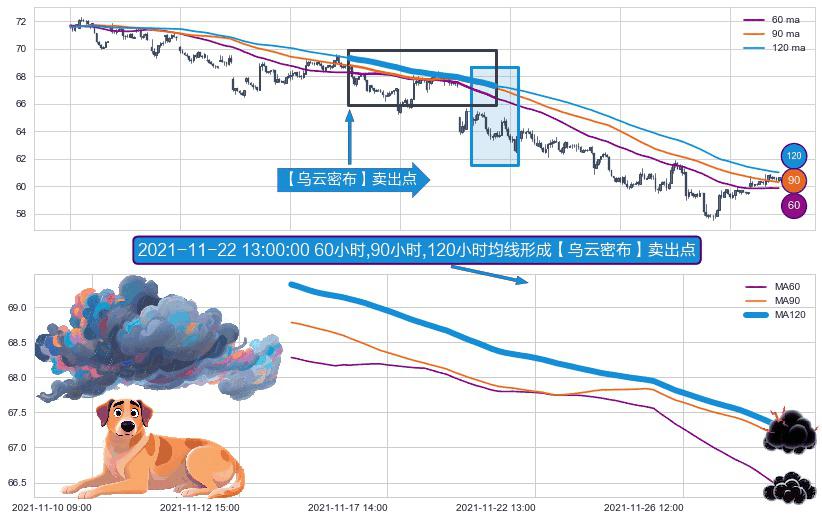⚀ 2021-11-15 15:00:00小时-2021-11-30 13:00:00小时显现 60小时-90小时-120小时均线 【乌云密布】卖出点 看空信号,后市看跌,卖出