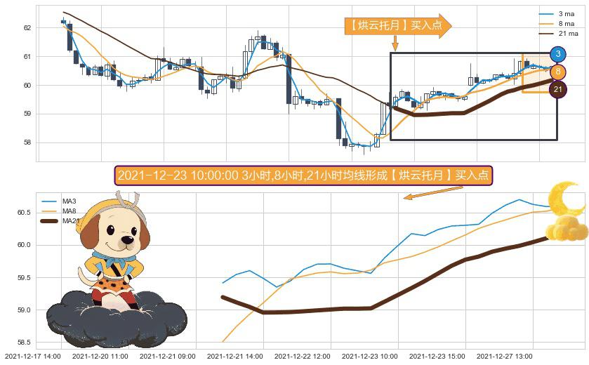 ⚀ 2021-12-21 11:00:00小时-2021-12-27 15:00:00小时显现 3小时-8小时-21小时均线 【烘云托月】买入点 看多信号,后市看涨,买入