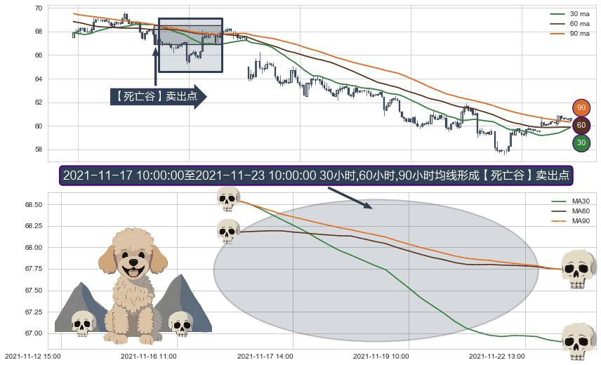 ⚀ 2021-11-17 11:00:00-小时至2021-11-23 10:00:00-小时显现 30小时-60小时-90小时均线 【死亡谷】卖出点 看空信号,后市看跌,卖出