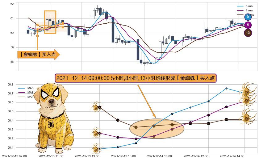 ⚀ 2021-12-14 09:00:00小时显现 5小时-8小时-13小时均线 【金蜘蛛】买入点 看多信号,后市看涨,买入