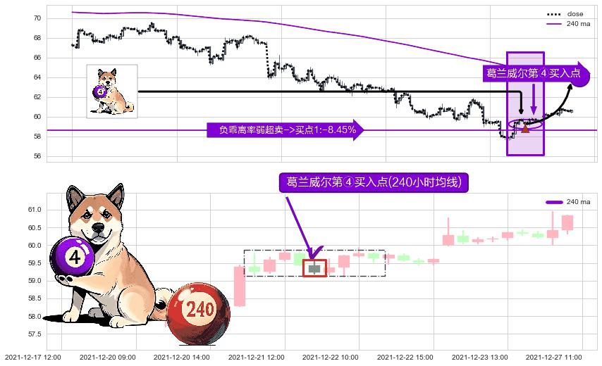 ⚀ 2021-12-21 14:00:00-小时显现 葛兰威尔均线 240小时均线 第④买入点 下降趋势均值回复的短线反弹信号,后市看涨,买进信号