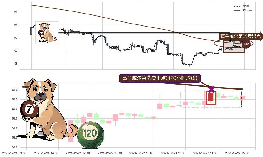 ⚀ 2021-12-27 10:00:00-小时显现 葛兰威尔均线 120小时均线 第⑦卖出点 下降趋势的中继信号,后市看跌,卖出信号
