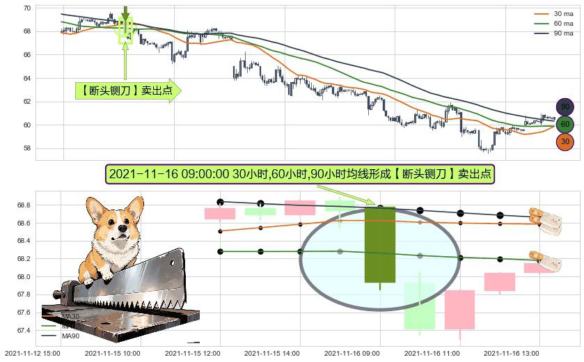 ⚀ 2021-11-16 09:00:00小时显现 30小时-60小时-90小时均线 【断头铡刀】卖出点 看空信号,后市看跌,卖出