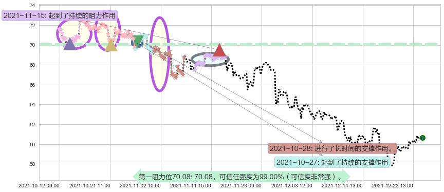 ♘ 阻力价格位70.08,可信任强度99.00%,距离最后交易2021-12-27 15:00形成的收盘价格60.67相差 +15.51%