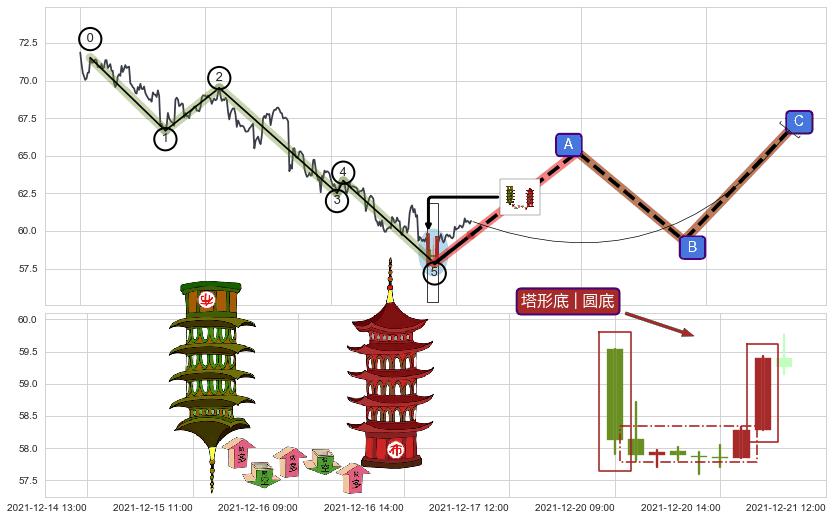 | 5 🅚:上升三部曲(升势三鸦) ➕ 🌊:波浪理论猜想下跌浪5已形成,猜想后续形成abc反弹上涨(均值回复) ☞ 看多信号 ⇥ 【🅚线】交织【图形】⇥ 综合量化分数: 59 | > |