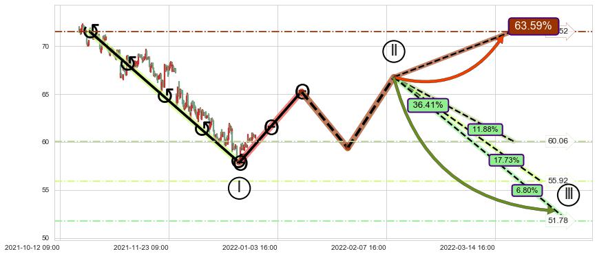 ➢ 循环浪继续向下【最高】位置(03-21:10, 60.06),匹配聚类样本比例32.63%, 可能性概率11.88%