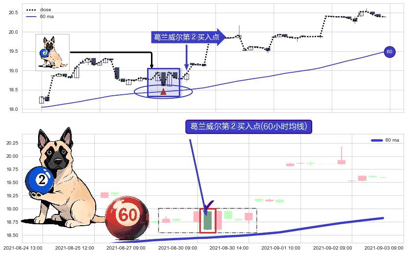 ⚀ 2021-08-30 10:00:00-小时显现 葛兰威尔均线 60小时均线 第②买入点 上升趋势的中继信号,后市看涨,买进信号
