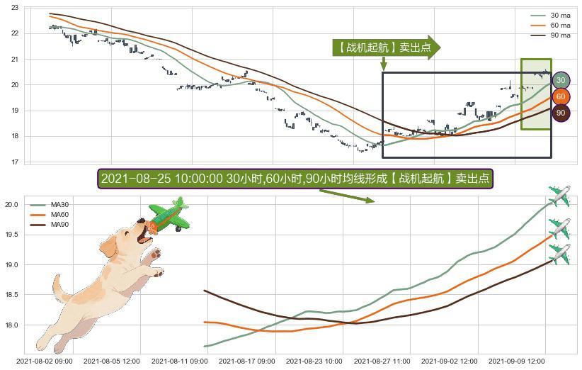 ⚀ 2021-08-10 14:00:00小时-2021-09-09 14:00:00小时显现 30小时-60小时-90小时均线 【战机起航】卖出点 看空信号,后市看跌,卖出