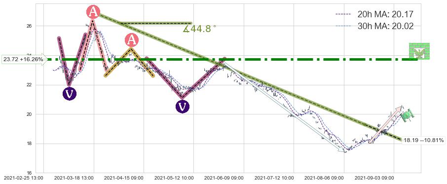 ♘ 阻力价格位23.72,可信任强度99.00%,距离最后交易2021-09-09 14:00形成的收盘价格20.40相差 +16.26%