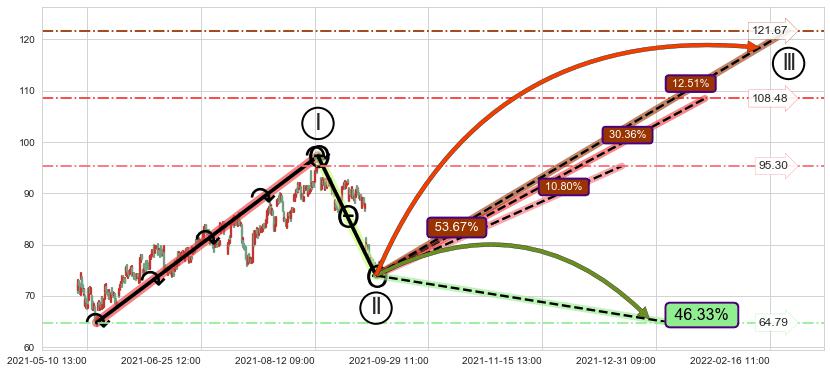 ➢ 大趋势走坏(跌破5浪起点位置)概率46.33%