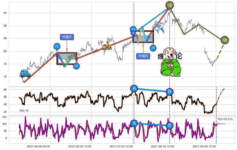 ➢ 【已完成】缠论 起点:05-21:14,完成第1中枢A,完成第2中枢B,终点:08-13:09,缠论共352交易小时