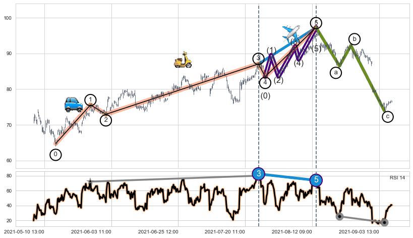 ➢ a,c调整浪MACD, RSI, KDJ走势都【未出现】背离,abc走势延续, 5浪反转概率增强
