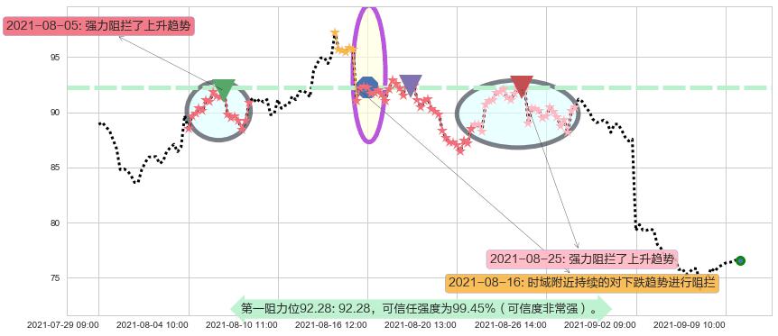 ♘ 阻力价格位92.28,可信任强度99.45%,距离最后交易2021-09-09 14:00形成的收盘价格76.60相差 +20.47%