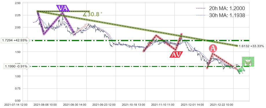 ♘ 阻力价格位1.7294,可信任强度75.58%,距离最后交易2021-12-27 15:00形成的收盘价格1.2100相差 +42.93%