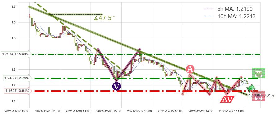 ♘ 阻力价格位1.3974,可信任强度62.66%,距离最后交易2021-12-27 15:00形成的收盘价格1.2100相差 +15.49%