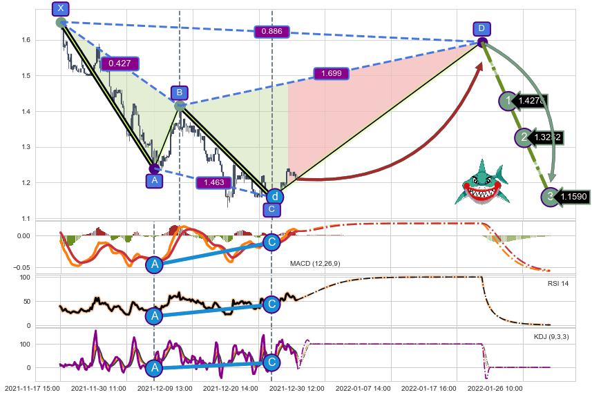 ➣ D点拟合预测价格1.5940,距离最后交易收盘价格1.2100相差 +31.74%