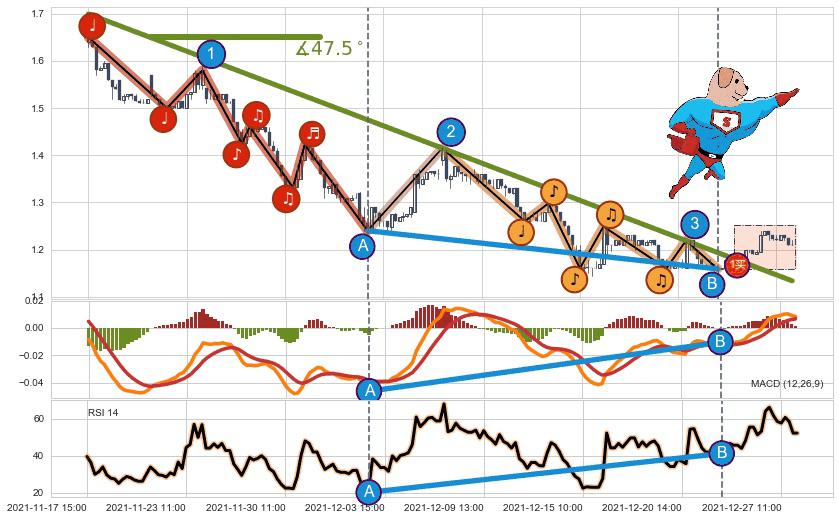 ⚔️ 2021-11-17 15:00-2021-12-23 09:00下跌趋势存在反转上涨[机会],其原下跌趋势的阻力位(1.1336)已被突破[强支撑信号],原下跌趋势角度: 47.5˚