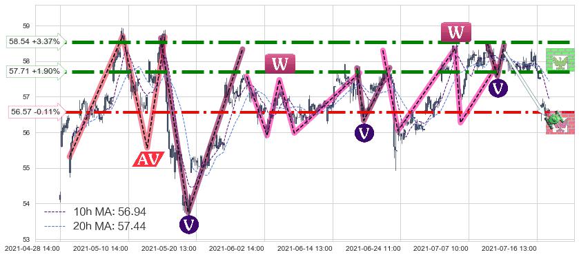 ♘ 阻力价格位57.71,可信任强度85.71%,距离最后交易2021-07-19 15:00形成的收盘价格56.63相差 +1.90%