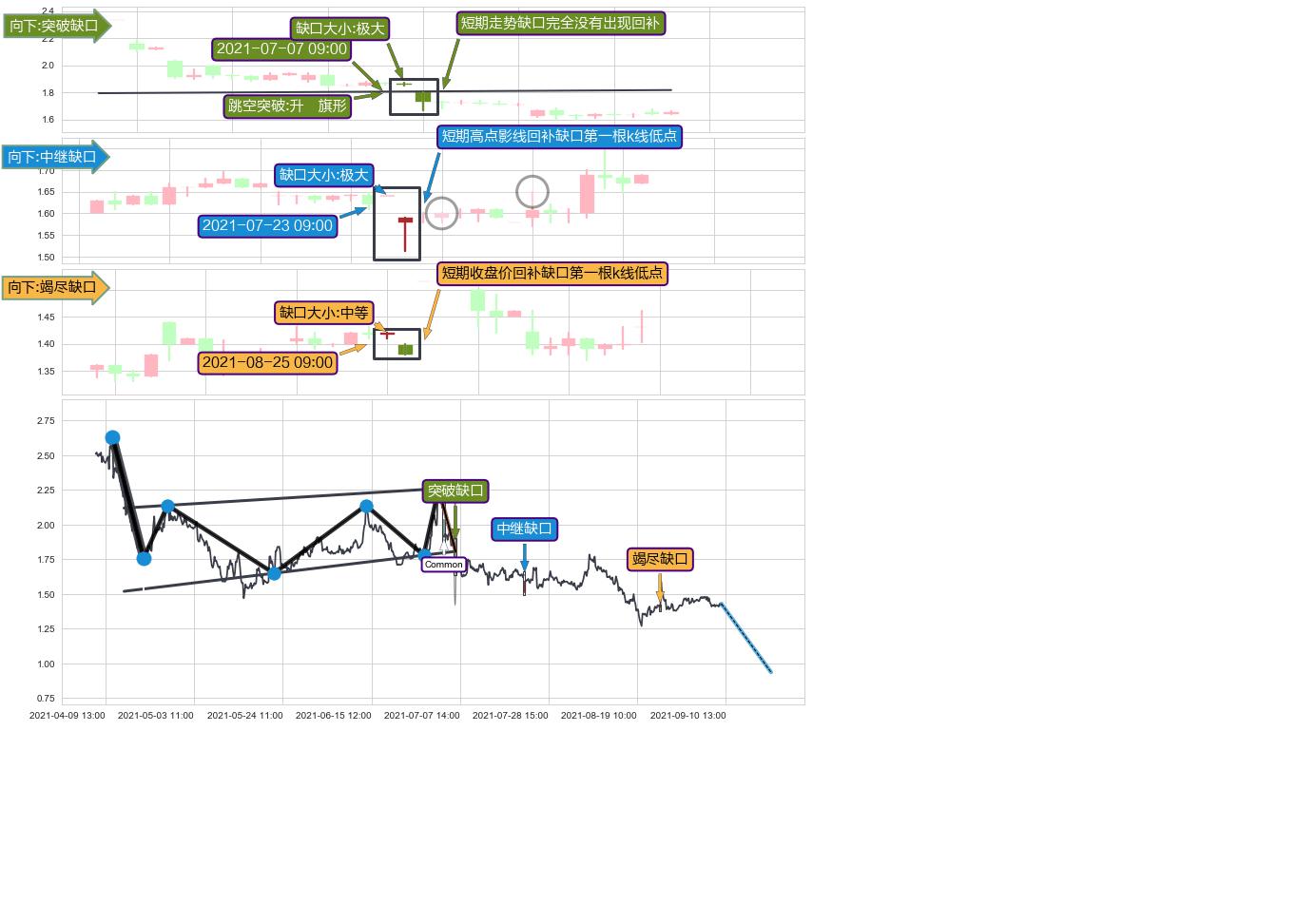 ➢ 2021-08-25 09:00形成:向下跳空【竭尽】缺口
