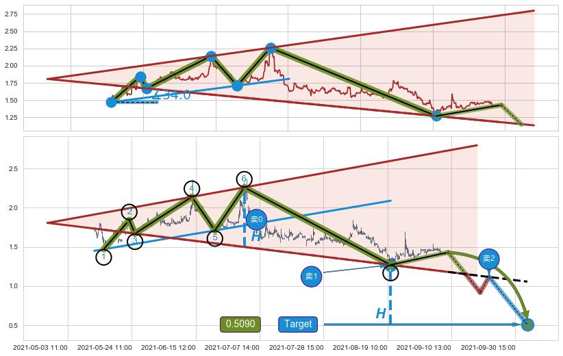➣ 最小中继整理跌幅→𝐇: 0.8700 (𝐇旗杆的长度:旗杆起点→顶点)