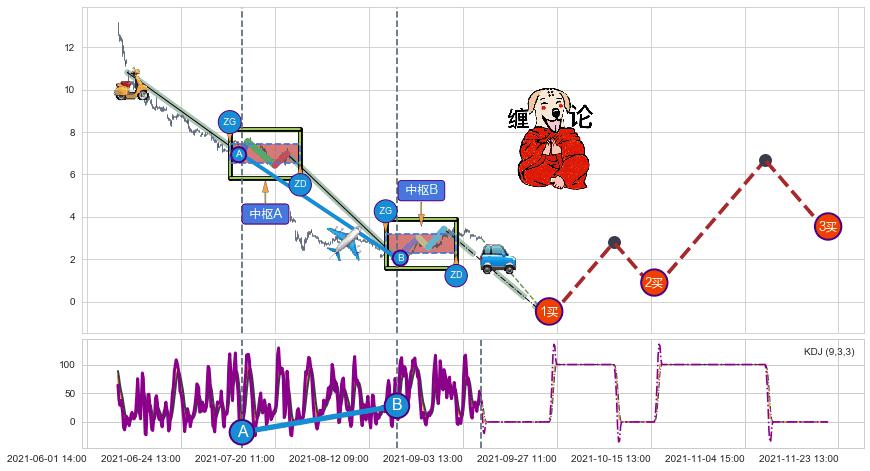 | 6 🅚:双飞乌鸦(树上二鸦) ➕ ☯️:缠论中枢点下降缠中枢B破位后距离1买距离较远,随后猜想后续持续下跌(趋势跟踪) ☞ 看空信号 ⇥ 【🅚线】交织【图形】⇥ 综合量化分数: 49 | > |
