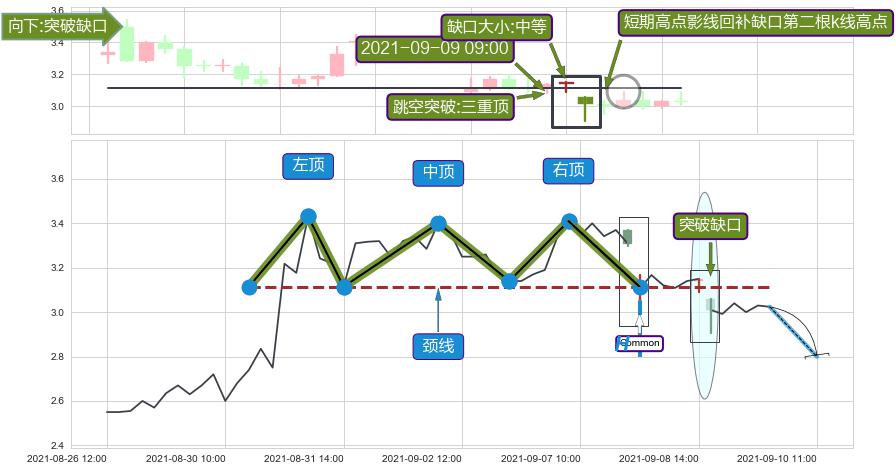 ➢ 【卖1】: 激进型 卖点→(09-08:09: 3.115 )形成突破三重顶【反转】形态