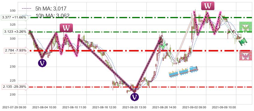 ♘ 阻力价格位3.377,可信任强度71.75%,距离最后交易2021-09-09 14:00形成的收盘价格3.024相差 +11.66%