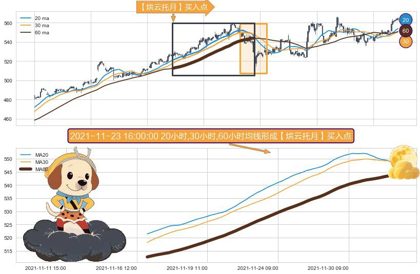 形态多维评估: ⚀ 2021-11-16 15:00:00小时-2021-12-01 15:00:00小时显现 20小时-30小时-60小时均线 【烘云托月】买入点 看多信号,后市看涨,买入