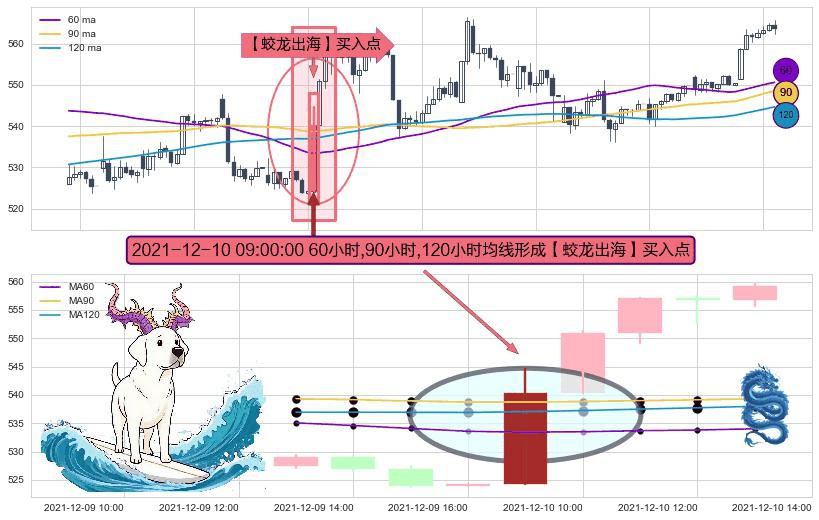形态多维评估: ⚀ 2021-12-10 09:00:00小时显现 60小时-90小时-120小时均线 【蛟龙出海】买入点 看多信号,后市看涨,买入