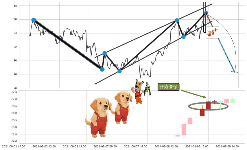 ➣ 支撑位【②④⑥】波动逐渐走高,构成【旗形】上平行线