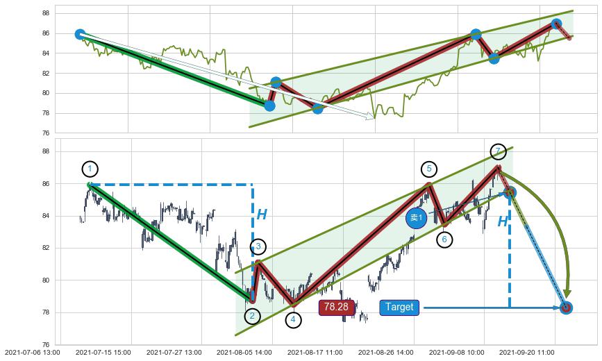 ➣ 最小中继整理跌幅→𝐇: 7.19 (𝐇旗杆的长度:旗杆起点→顶点)