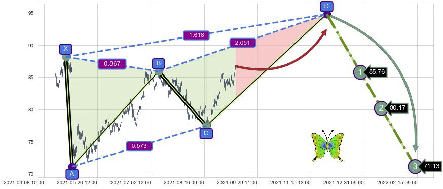 ➣ 未完成【蝴蝶】形态起点X: 04-26:11, 已到达C点: 08-17:11, 预测最终D点: 11-29:13, 共979交易小时