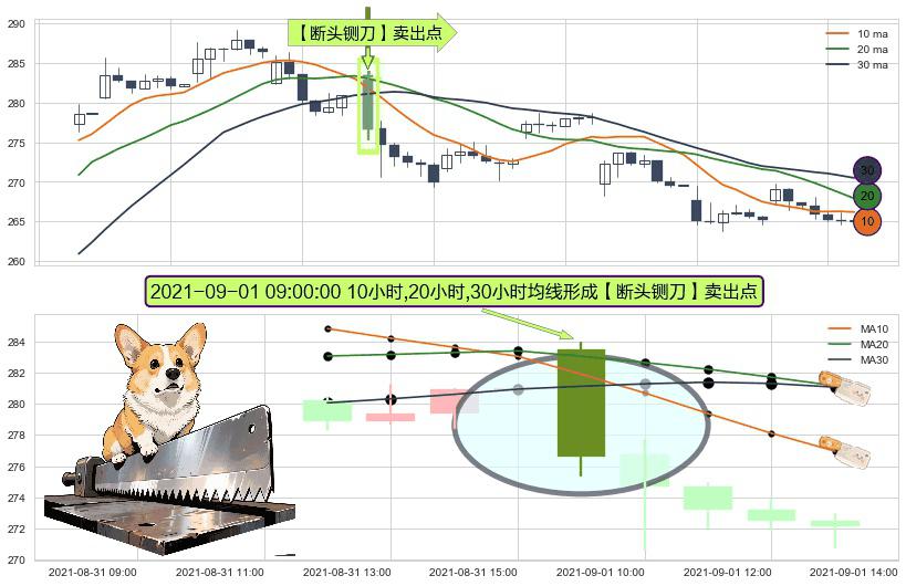 形态多维评估: ⚀ 2021-09-01 09:00:00小时显现 10小时-20小时-30小时均线 【断头铡刀】卖出点 看空信号,后市看跌,卖出