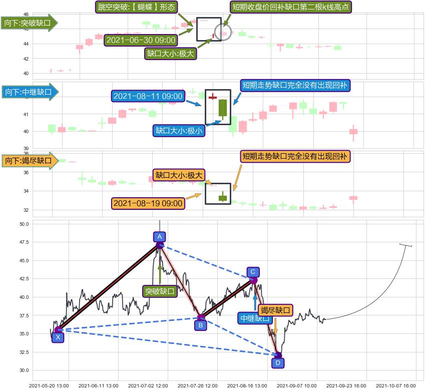 ➢ 2021-08-19 09:00形成:向下跳空【竭尽】缺口