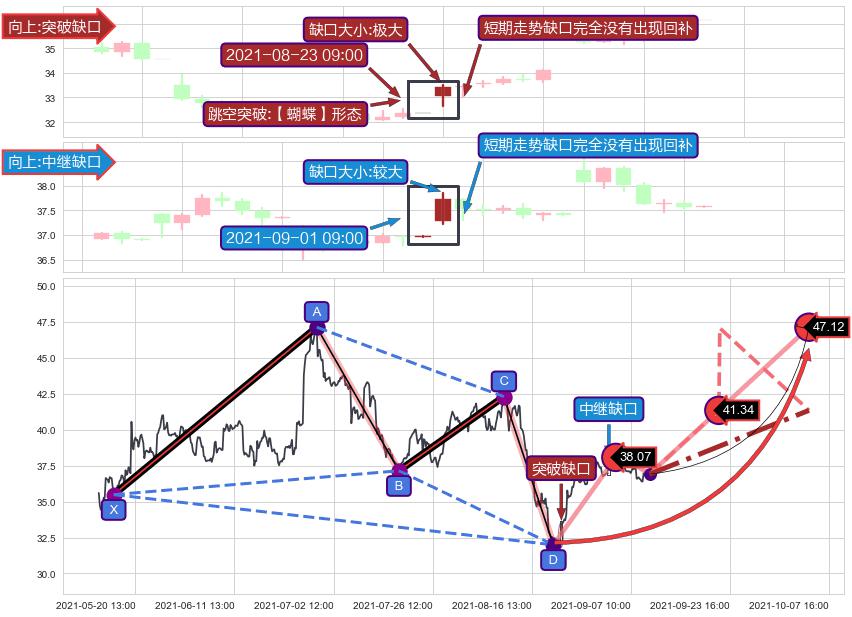 ➢ 2021-08-13 09:00形成:向下跳空【突破】缺口