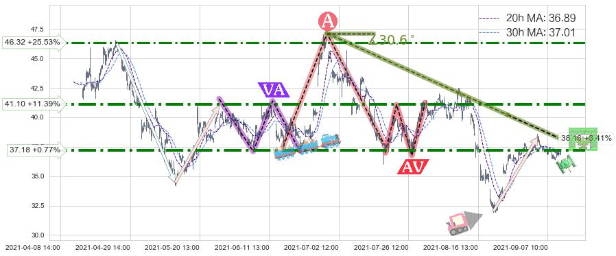 ♞ 20小时均线:36.89,30小时均线:37.01→ 快线<慢线