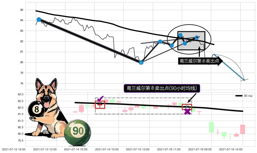 ♘ 在最后的下跌阶段2021-06-16 09:00至2021-07-19 15:00,存在 持续未破位的阻力位 ,阻力价格82.08,可信任强度85.22%,其距离最后价格80.75相差 +1.65%