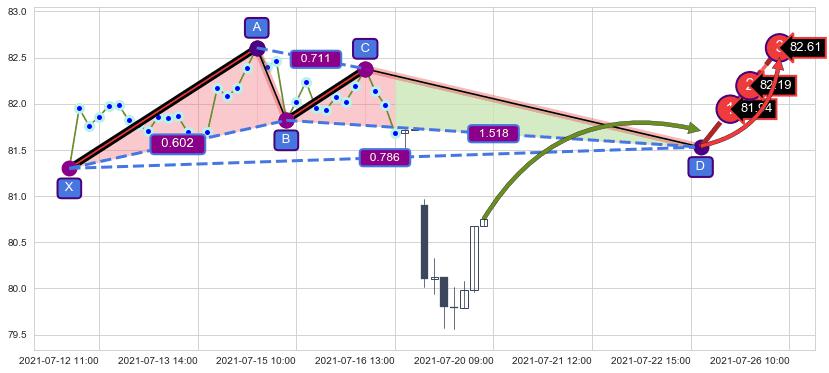 ➣ 未完成【伽利】形态起点X: 07-09:14, 已到达C点: 07-16:10, 预测最终D点: 07-23:09, 共56交易小时