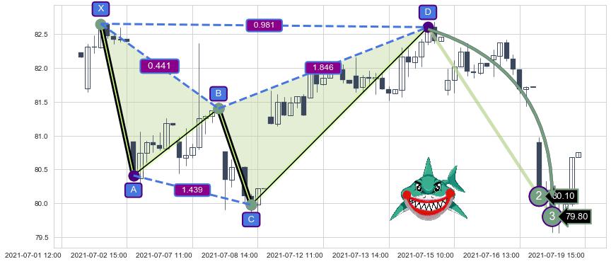 ➣ 已完成【鲨鱼】形态起点X: 07-02:11, 终点D: 07-14:13, 共51交易小时