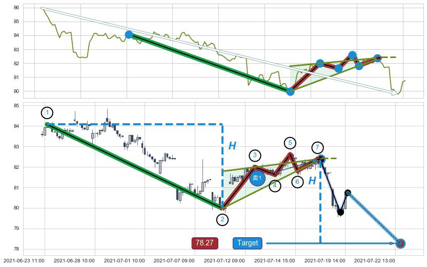 ➣ AI预测: 假定反转启动后, 第❶目标位置(07-23:12, 81.94)