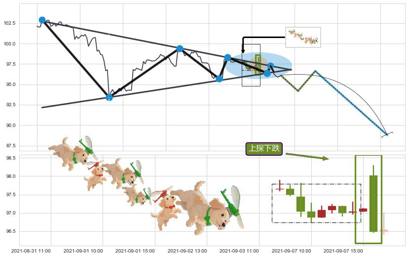 | 6 🅚:阴包阳(穿头破脚) ➕ 📐:下降对称三角整理下行突破支撑位破位, 猜想持续下沉下跌,被突破的支撑位已变为阻力位 ☞ 看空信号 ⇥ 【🅚线】交织【图形】⇥ 综合量化分数: 41 | > |