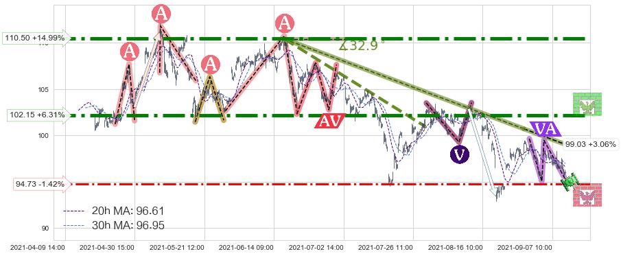 ♘ 阻力价格位102.15,可信任强度97.85%,距离最后交易2021-09-09 15:00形成的收盘价格96.09相差 +6.31%