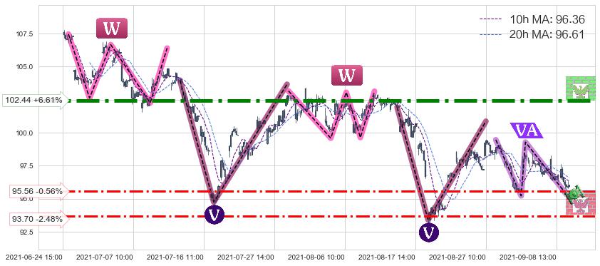 ♘ 阻力价格位102.44,可信任强度99.05%,距离最后交易2021-09-09 15:00形成的收盘价格96.09相差 +6.61%