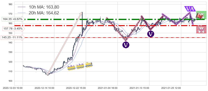 ♘ 支撑价格位145.25,可信任强度47.75%,距离最后交易2021-01-28 16:00形成的收盘价格163.41相差 -11.11%