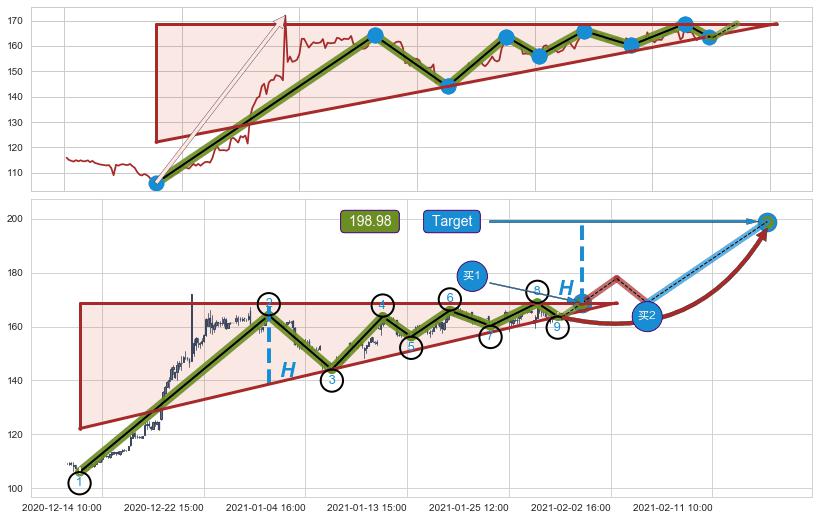 ➢ 【仅预测突破】最后价格:163.41与预测突破价格:168.77→【空间较大】后续最小【整理】第一目标价格→(02-16:13: 198.98 )