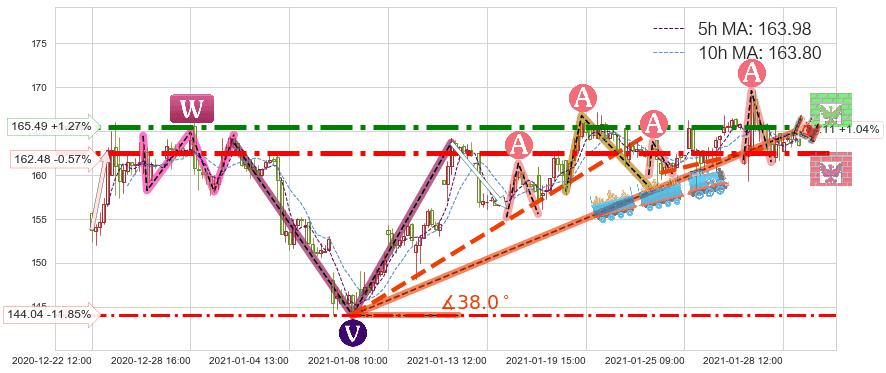 ♘ 支撑价格位162.48,可信任强度87.90%,距离最后交易2021-01-28 16:00形成的收盘价格163.41相差 -0.57%