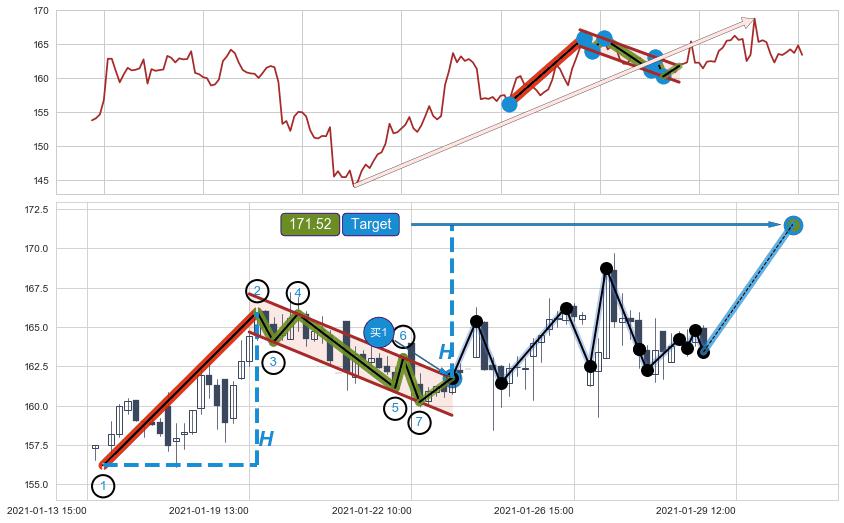 ➣ 最小中继整理涨幅→𝐇: 9.76 (𝐇旗杆的长度:旗杆起点→顶点)