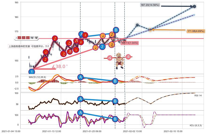 ➣ 预测:2021-02-03 16:00,【试探支撑】稳定目前上涨趋势的前提下,预测价格:171.08