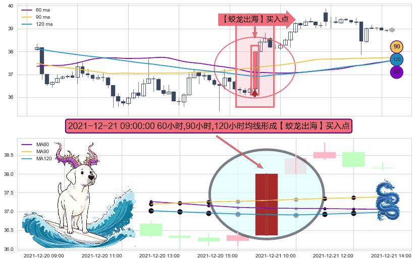 形态多维评估: ⚀ 2021-12-21 09:00:00小时显现 60小时-90小时-120小时均线 【蛟龙出海】买入点 看多信号,后市看涨,买入